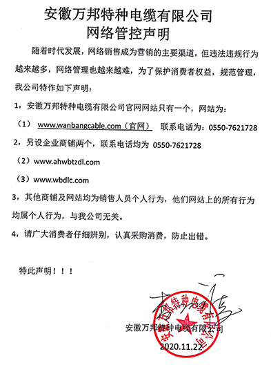 鄭重聲明:安徽萬邦特種電纜有限公司官方網站為:www_wanbangcable_com.pakaiselesa.com,除此之外無任何子網站或合作網站,其余均為假冒偽劣。電話:0550-7621728 13485756353 地 址:安徽省天長市滁州高新技術產業開發區經四路29號